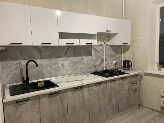 На кухне- ламинат, новый кухонный гарнитур. Варочная панель новая с газ-контролем.